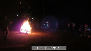 【1日目:キャンプファイヤー。森の暗がりの中で楽しみました】