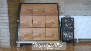 【2日目:朝食(からまつ館食堂の前には、本校にウーパールーパーを寄贈してくださった、元海老沼中校長の中川先生の作品が飾ってあります)】
