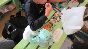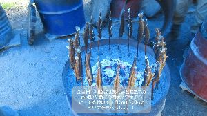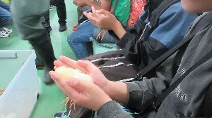 【2日目:川魚さばき(児童が自分でさばいたイワナを、「いただきます」の意味もかみしめて食しました。】