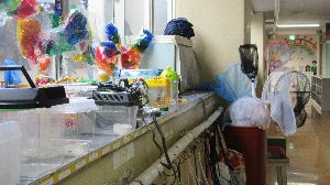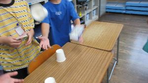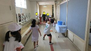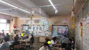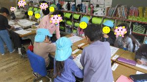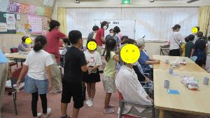 9月5日 台風の影響で、休み時間は室内で過ごしました。2年生は手作りおもちゃで、また、大砂土デイサービスセンターで交流を楽しんでいました。