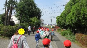 10月9日 1年生 秋の本郷第1公園で遊びました。出発の前も立派です。