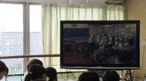 9月16日 竜巻避難訓練。全学年、避難の仕方をビデオで学習しました。