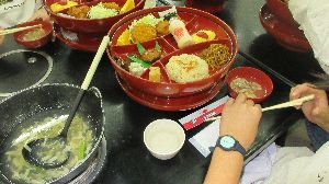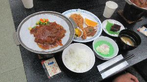 【2日目:昼食(カツやきゃらぶきなど、会津の名物を楽しみました】