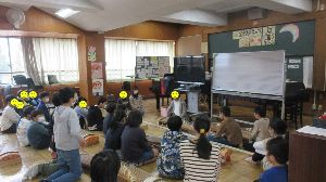 11月6日 音楽朝会 4年生の合唱、10月の今月の歌「ハッピーミュージック」(振付あり)を全校で歌いました。