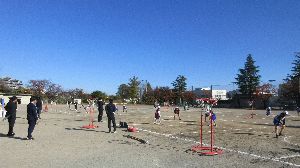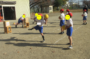 11月21日 2年生 ボール投げゲーム 研究授業として先生たちが見学しました。