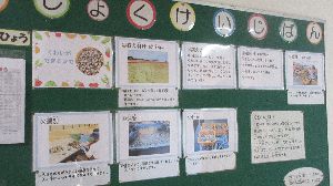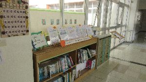 11月20日 おすすめの本。学年ごとに期間を決め、各クラスの代表の文が校長室前に掲示されています。