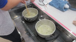 11月11日 5年生 家庭科、煮干し出しの味噌汁づくり
