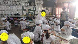 10月1日 6年生。家庭科でボランティアとして保護者の方に協力していただきました。