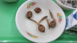 12月5日 4年生が皮をむいたくわいが全校の給食に提供されました。