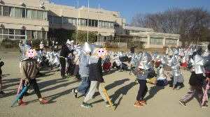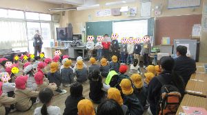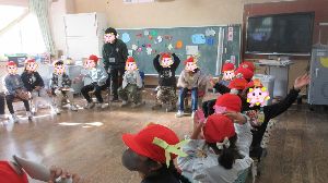 12月11日 1年生 4つの幼稚園・保育園の年長さんを招待して、交流会「がっこうごっこ」をしました。