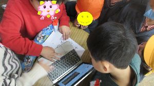 11月28日 2年生 図工 自分の作品の画像を保存して、先生に提出します。みんなの作品も確認できます。