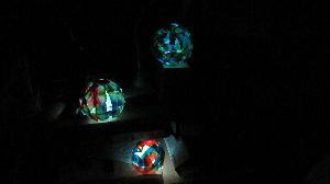 12月22日 4年生 校外学習、図工で作った和紙の作品「ゆめいろランプ」をスタジオで輝かせました。