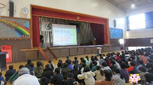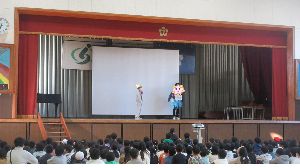1月20日 児童集会 飼育委員会が、劇で学校で飼育しているウナギの紹介や観察の仕方などを伝えました。