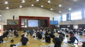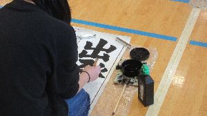 1月8日 6年生 書きぞめ、体育館で取り組みました。