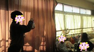 1月14日 乾燥対策、カーテンに霧吹き