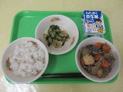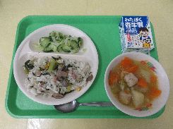 10月1日(水) ごはん ザクザク煮 和風サラダ 牛乳
