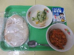 10月2日(木) ツイストパン チリコンカン こまつなサラダ 牛乳