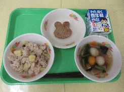 10月7日(火) さつまいもごはん うさぎハンバーグ 月見汁 牛乳
