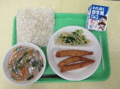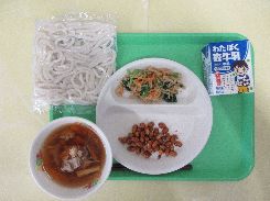 10月8日(水) 肉うどん 大豆のしゃりしゃり揚げ 切干大根のごま和え 牛乳