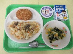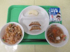 10月14日(火) ごはん 揚げ出し豆腐のきのこソース 根菜汁 牛乳