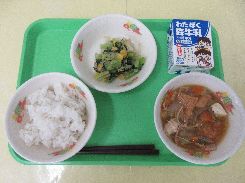 10月21日(火) ごはん 生揚げのすき煮 こまつなのツナ和え 牛乳