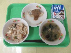 10月29日(水) ごはん さんまのかば焼き すまし汁 海苔酢和え 牛乳