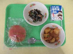 10月24日(金) はちみつパン ポテトのミートソース和え ひじきのマリネ 牛乳