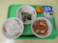 11月4日(火) ごはん 肉豆腐 わかめの酢の物 みかん 牛乳
