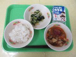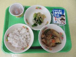 11月17日(月) むぎごはん 彩の国納豆 肉じゃが 小松菜のおひたし 牛乳