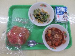 11月27日(木) ライスボールパン 彩の国シチュー ビーンズサラダ りんご 牛乳