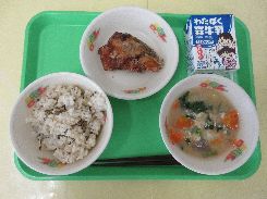 11月19日(水) しゃくし菜ごはん 鯖の柚子立田 呉汁 牛乳