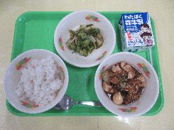 11月25日(火) むぎごはん うずら卵の中華煮 茎わかめのナムル 牛乳