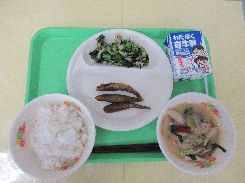 11月28日(金) ごはん メヒカリのから揚げ 秋の具だくさん味噌汁 ひじき入り磯香和え 牛乳