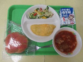 1月14日(水) フラワーロール チーズオムレツ ミネストローネ コールスローサラダ 牛乳