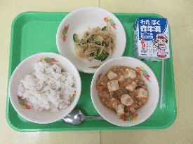 1月15日(金) ごはん 麻婆豆腐 ナムル 牛乳