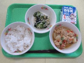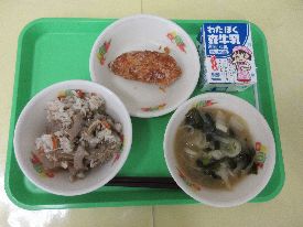 1月23日(金) ごはん 油麩の卵とじ わかめの酢の物 牛乳