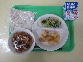 1月21日(水) きつねうどん 甘辛じゃがいも からし和え 牛乳
