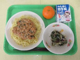 1月26日(月) ジャージャーめん 海藻サラダ ぽんかん 牛乳